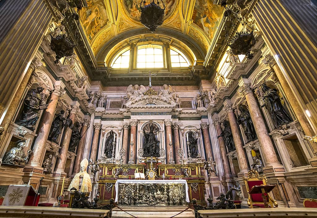 The Cathedral of the Assumption of Mary, also called the Duomo, is Naples’ main church and home to important artistic, cultural, and historic heritage. From the outside, Naples Cathedral looks like a regular church. This is because of the other buildings that surround it. Not only are there beautiful artworks and wonderful architectural styles to see in the cathedral, but you can also get a real sense of the layers of Naples’ history here. Plus, the cathedral is the home of the principal patron saint, San Gennaro, and is where the special Miracle of the Blood ceremony takes place.